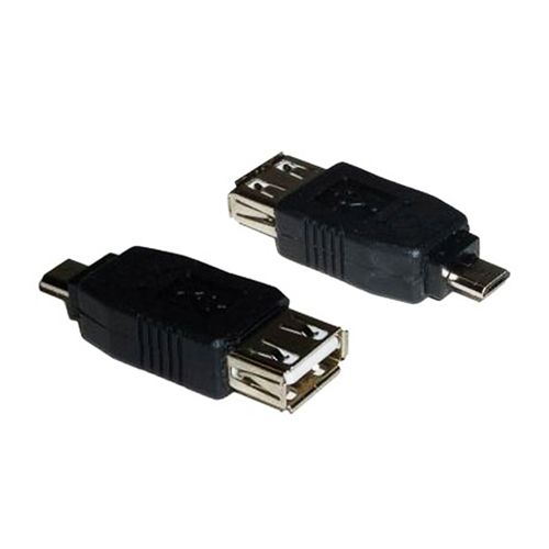 Adaptador USB 2.0 con conector tipo A hembra en un extremo y tipo micro USB B macho en el otro.