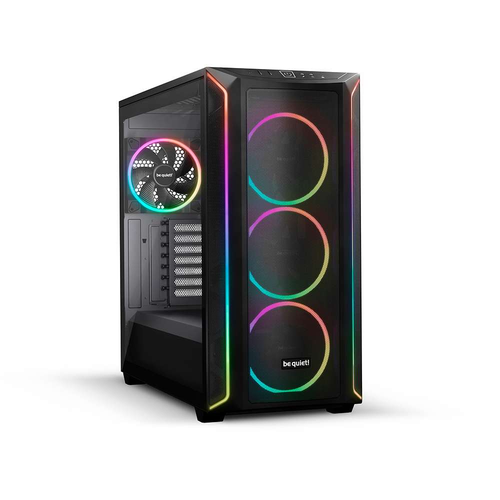 be quiet! Shadow Base 800 FX Negra es una caja optimizada para el flujo de aire que ofrece una impresionante iluminación ARGB y proporciona espacio suficiente para componentes de gran tamaño, como enormes tarjetas gráficas y placas base E-ATX.