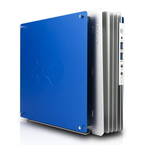 In Win H-Frame Mini es un sorprendente chasis abierto, fabricado con metal plateado de aluminio en color azul y plata.