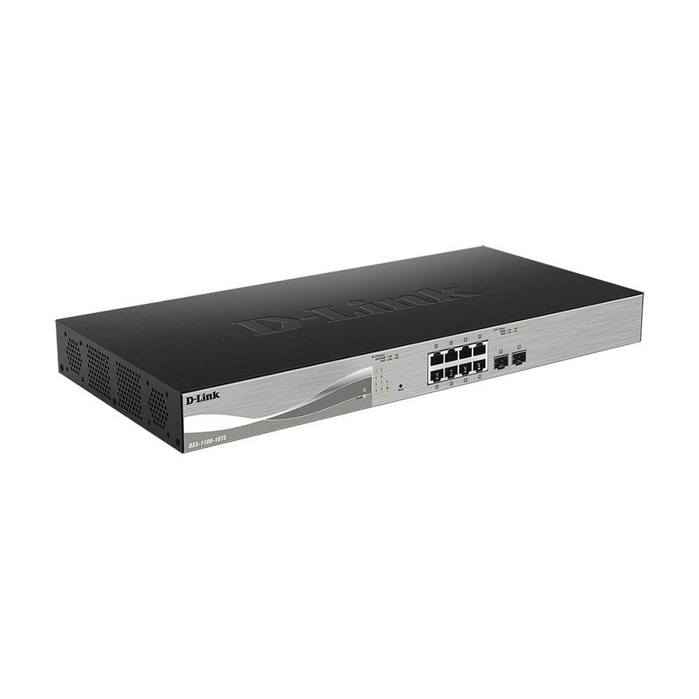 DXS-1100-10TS 10Gigabit Smart Switch proporciona una solución asequible para PYMES que deseen implementar redes de 10 Gb. Sus 8 puertos 10 GBASE-T aumentan al instante el ancho de banda de red a 10G a través de cableado Cat 6a estándar sin necesidad de revisar el cableado de la infraestructura de red existente. Los 2 puertos Gigabit de fibra SFP+ proporcionan mayor flexibilidad de conexión a la red.