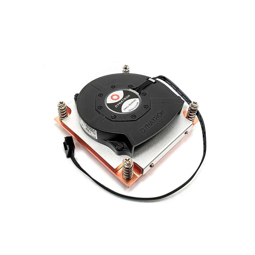 El Dynatron T06 es un disipador compacto de alto rendimiento diseñado para servidores 1U y sistemas con limitaciones de espacio. Compatible con procesadores Intel de socket LGA 115x y LGA 1200, este cooler está optimizado para manejar cargas térmicas de hasta 125W de TDP, proporcionando una disipación eficiente gracias a su diseño con aletas de cobre skiving que maximizan el área de superficie para una mayor transferencia de calor.