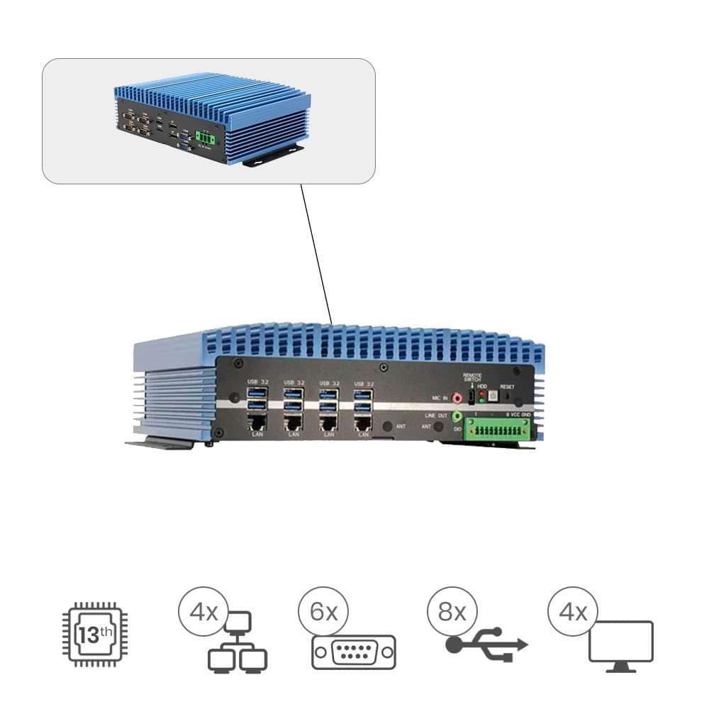 The Appliot JMP500 is a fanless industrial mini PC designed to provide exceptional performance and versatility in demanding environments. Equipped with 12th and 13th generation Intel® Core™ processors, this device ensures superior processing capacity, ideal for industrial applications that require high efficiency and reliability.