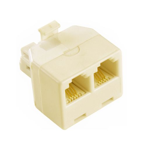 Bifurcador de teléfono con 1 entrada (macho) y 2 salidas (hembra).