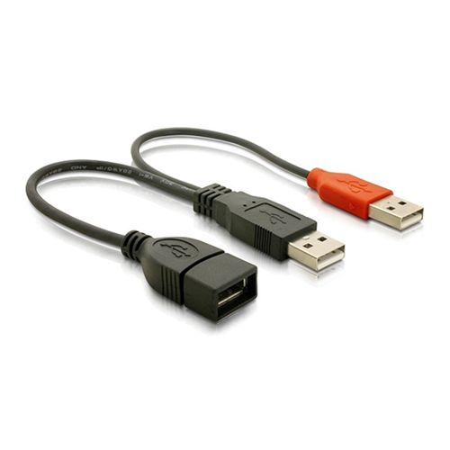Cable USB 2.0 con conector tipo A hembra en un extremo y tipo A macho datos+tipo A macho de alimentación en el otro.