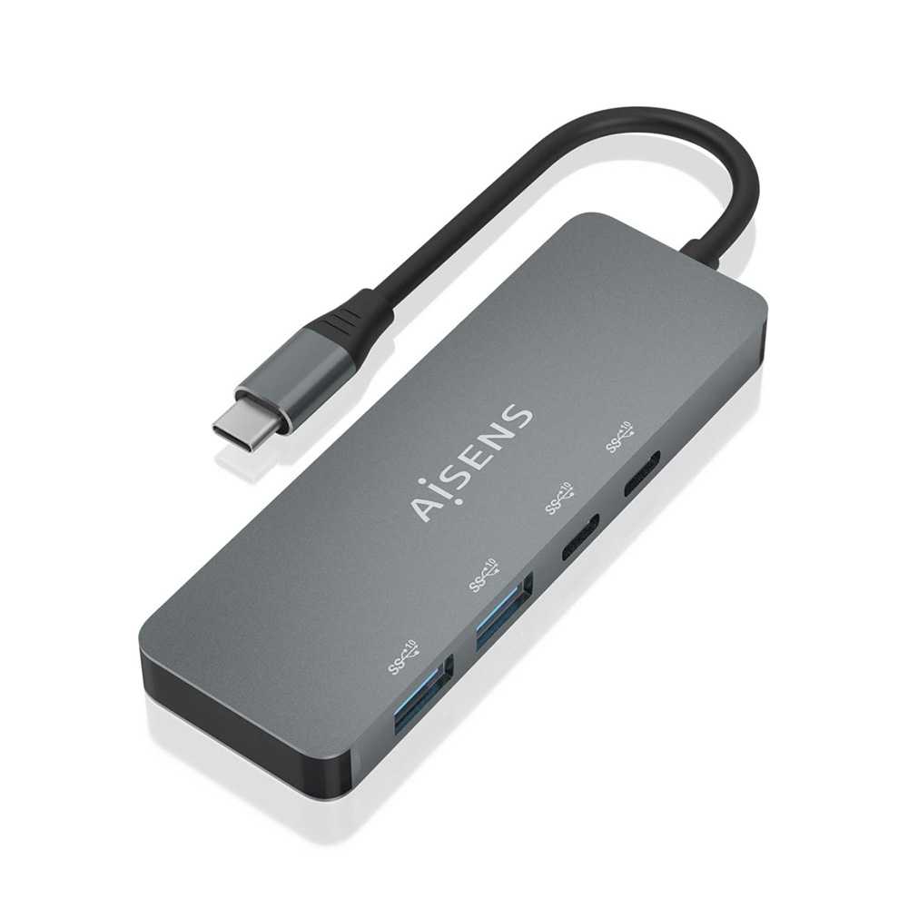 The Aisens A109-0694 is a powerful USB 3.2 Gen2 hub designed to maximize connectivity and data transfer on your devices. Equipped with two USB-C 10G ports and two USB-A 10G ports, all supporting transfer speeds of up to 10Gbps, this device is ideal for those who need fast and efficient solutions in their work or personal environment. Its compact and stylish grey design makes it a perfect portable tool for travel or daily work.