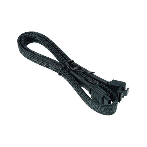 Cable con certificación SATA 3.0 enmallado en nylon negro con cierre de seguridad y ángulo en 90º