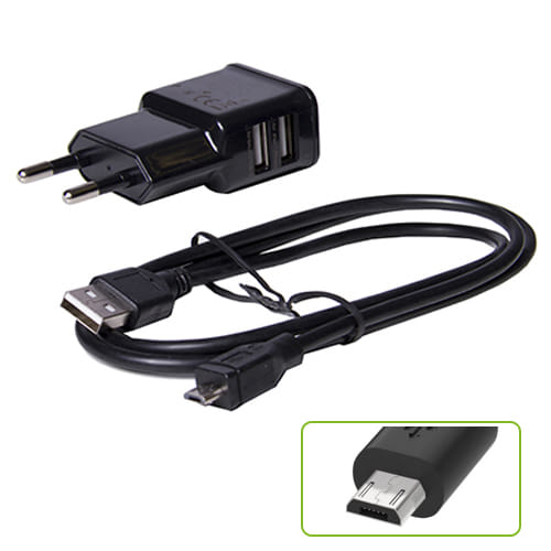 * AC-DC transformer.* Micro-USB connection.