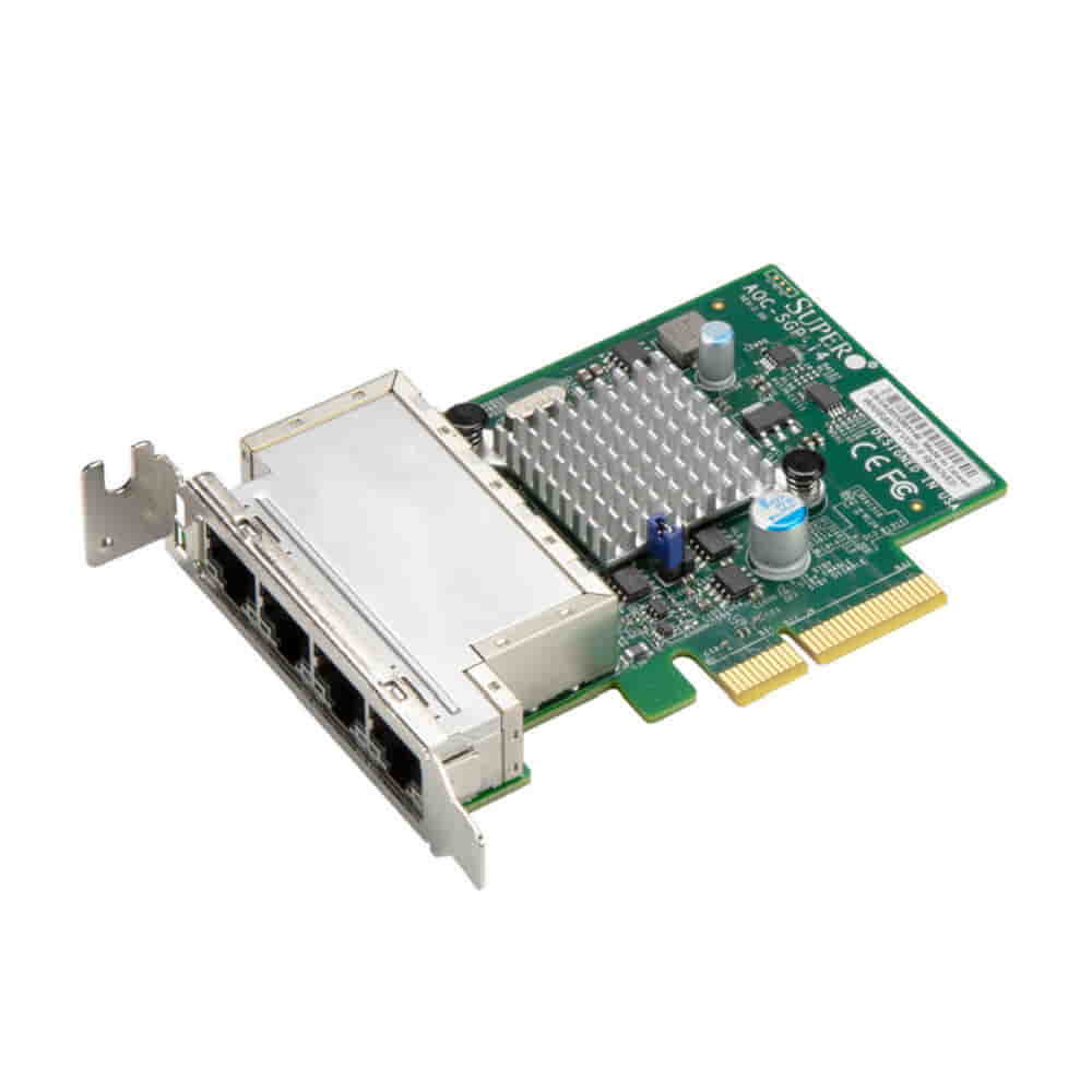 The Supermicro AOC-SGP-I4 is a Gigabit network card with 4 RJ45 ports.