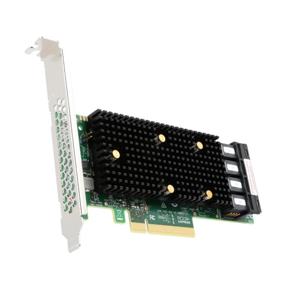 La HBA 9400-16i utiliza una interfaz PCIe 3.1 x8, garantizando un ancho de banda adecuado para aplicaciones críticas y ofreciendo un rendimiento IOPS mejorado en comparación con generaciones anteriores. Su diseño de perfil bajo y conectores internos SFF-8643 facilitan la integración en servidores de rack y estaciones de trabajo de alta gama, proporcionando una solución robusta y eficiente para infraestructuras de almacenamiento avanzadas.