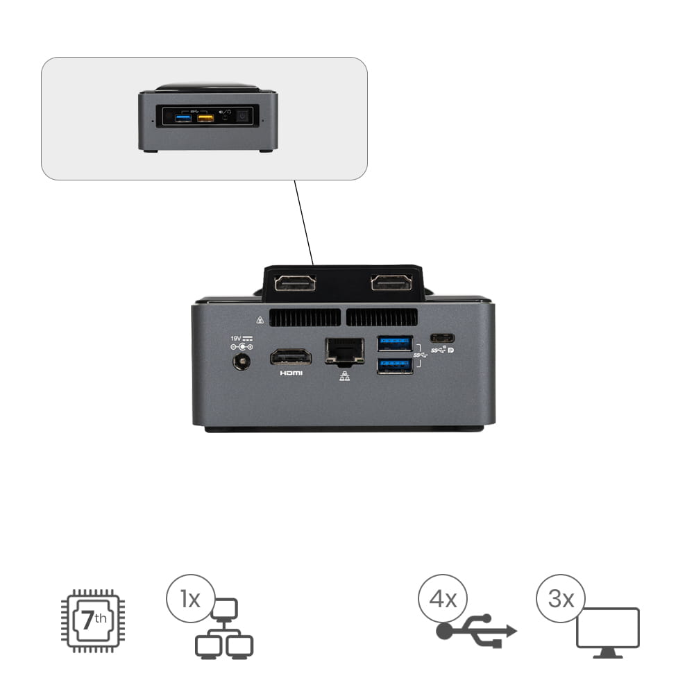El Nuc Appliot I3-3HHD añade 2 puertos HDMI al formato NUC. Incremente la productividad añadiendo múltiples pantallas HDMI con una resolución de 1920x1200 a un coste tan reducido como su tamaño.