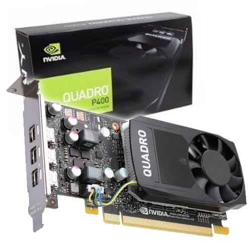 La NVIDIA Quadro P400 combina una GPU Pascal de 256 núcleos CUDA, una gran memoria de a bordo y tecnologías avanzadas de visualización para ofrecer un gran rendimiento para una amplia gama de aplicaciones profesionales. 2 GB de memoria GPU ultrarrápida facilitan la gestión de complejos modelos 2D y 3D y el factor de forma lowprofile de una sola ranura lo hace compatible con la mayoría de los chasis de espacio y potencia limitada.
